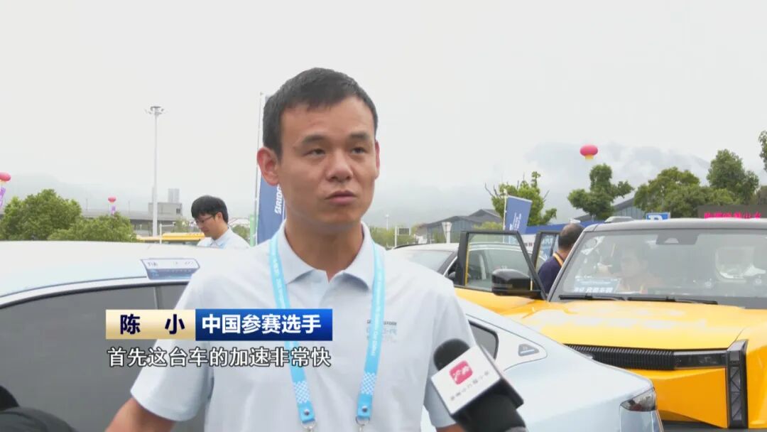 这款(奇瑞)星途的星纪元ES参加这种国际赛,首先这台车的加速非常快,然后就是操控非常好 底盘非常扎实,在入弯减速(时)感觉非常稳。