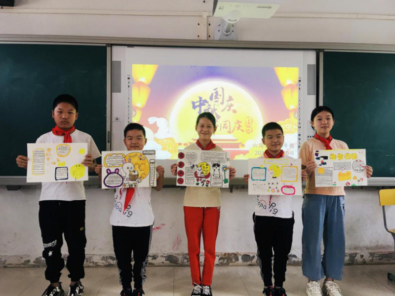 汇文中学组织少先队员开展以“迎国庆、庆中秋”为主题的板报展和画展