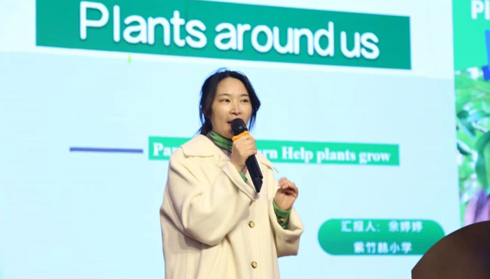 课堂观摩结束后,研讨活动向更深层次推进。裕安区小学英语兼职教研员汪红老师带来《三年级上册 U4单元教学的整体构建与实践》专题分享,她立足单元主题意义,系统梳理各板块内在逻辑与教学目标,详细阐述了如何以 “身边的植物” 为主线,开展整体性、情境化教学设计的思路与方法。