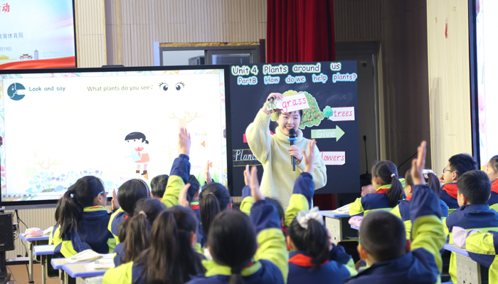 张丹丹老师执教的对话课,巧妙联结学生生活实际,从班级植物角、齐园等场景切入创设教学情境,引发学生主动思考与表达欲望,引导学生自信开口、互动交流,课堂氛围生动活泼。紧接着,陈慧玲老师展示的词汇课亮点纷呈,她不仅灵活运用图片、歌谣、游戏等多元教学手段,将词汇学习融入具体语境,更以丰富的课堂评价用语精准赋能,及时肯定学生的每一次尝试与进步,充分调动学生的参与热情,让学生在轻松愉悦的氛围中高效掌握核心语言知识。两节展示课深度践行“学用结合”的教学思想,为现场观摩教师提供了可借鉴、可操作的实践范例。