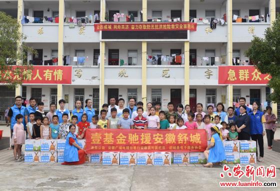 本次壹基金华帝股份向舒城县共捐赠壹基金温暖包180个,价值6.57万元,分别发放给、柏林、千人桥、桃溪3个乡镇安置点的180名受灾儿童。(蔡晓凤/文 谢学东/摄)