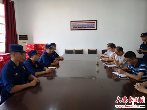 2020年7月31日下午,在新安中学行政楼二楼会议室,为支援裕安区抗洪抢险驻扎在新安中学的河南省郑州市消防救援支队副支队长李隆、作战训练处副处长李光明、特勤三战指导员高原,陇海西路消防站站长张奇,周口市消防救援支队抗洪抢险突击队队长晋松奇等分别代表两市的消防救援官兵向新安中学家庭遇到洪涝灾害的困难学生捐款、捐物。