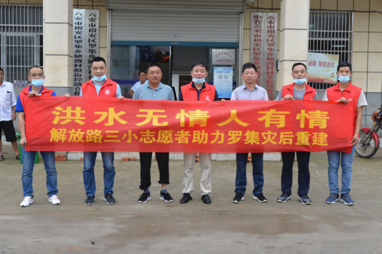 罗集乡的灾情牵动着无数人的心。7月30日,六安市解放路第三小学组成志愿服务队赶赴罗集乡储渡村,开展灾后清淤、消毒、心理辅导、防疫宣传、走访慰问等志愿服务活动,并送去万余元的慰问物资及慰问金,帮助受灾群众尽快恢复生产生活,重建美好家园。