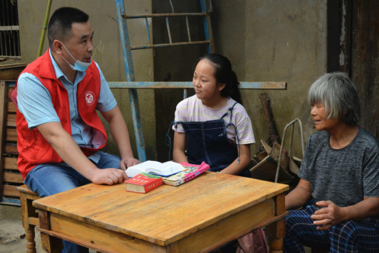灾后重建需要各方力量共同参与,重建家园更多的是关注基础设施、农田作物等的修建和种植,往往忽视了灾后群众的心理疏导。解放路三小的志愿者们充分发挥自身优势,以询问日常饮食作息、家庭状况、兴趣爱好为交谈突破口,对留守儿童、孤寡老人、贫困学生等弱势群体进行心理疏导工作,并教会他们呼吸操、分散注意力等方式降低焦虑、稳定情绪。通过心理疏导,情绪调节,帮助受灾群众重建“心”家园,坚定渡过难关的信心。