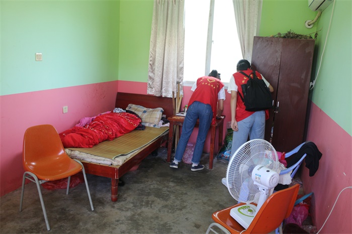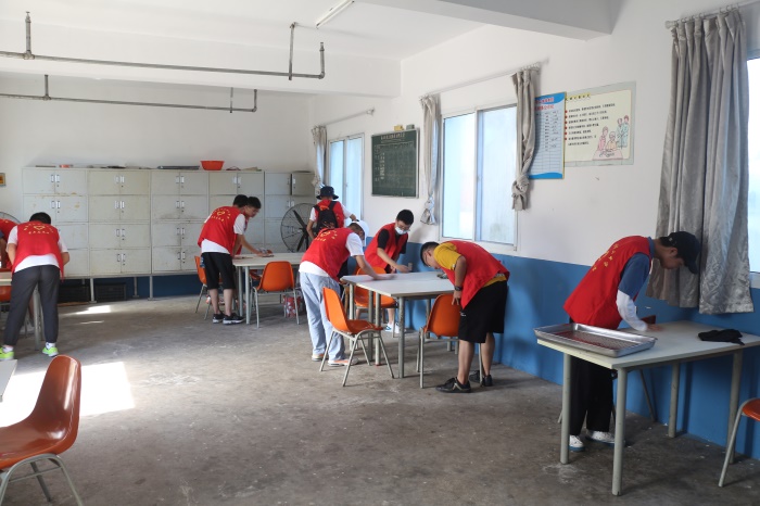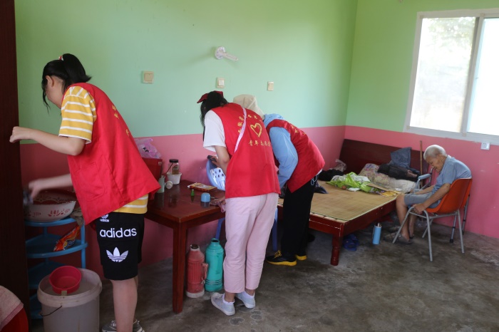 到达养老院后,同学们顶着烈日,不畏酷热,立即开始行动起来。他们纷纷拿起抹布、脸盆等劳动工具,在养老院负责人的引领下走进餐厅、老人居住房间等场所,对室内桌椅、院内门窗和走廊扶手等进行了清洁,对院内卫生垃圾进行了清理。