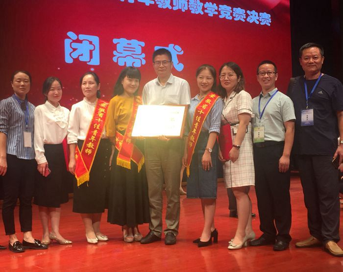赵莉老师综合素养高,专业基本功扎实,教学理念先进,现代教学技术应用娴熟,英语口语准确流利,课堂掌控能力强。在决赛过程中自信沉着,发挥稳定,一路过关斩将,以优异的成绩获得本次竞赛决赛英语组一等奖,被授予“安徽省十佳青年教师”光荣称号。