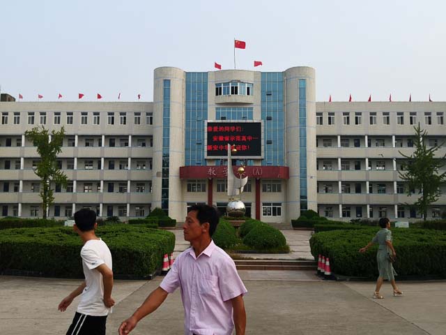 9月1日,六安市新安中学教学主楼顶上红旗招展,主楼的电子显示屏上“亲爱的同学们,安徽省示范高中——新安中学欢迎你”等欢迎、励志标语格外醒目,学校南大门和田径运动场通往报名工作场所学生餐厅的路边悬挂着一幅幅欢迎、励志标语,新安中学2020级高一新生正式开学。