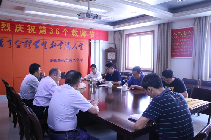 9月8日上午,六安市扶贫开发局副局长王小庆一行来到六安二中颁发全市脱贫攻坚社会(定点)扶贫工作先进单位奖牌。校长、党委书记关世宏,副校长、党委委员王建安、李守宏参加会议。