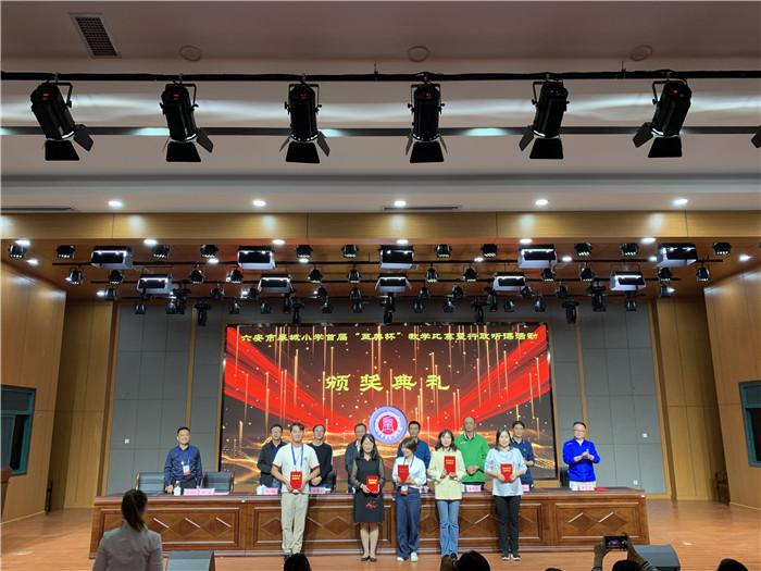 在颁奖典礼上,金安区教研室主任邬登宏宣读了获奖老师名单。六安市教科院小语教研员严仍江指出,皋城小学在开校之初、开学不久就把教学教研放在学校工作的中心位置,体现了学校领导班子对教学的重视,对教育的理解是非常正确的,这是符合教育主管部门要求的,也是教育科研部门所希望的,抓住“教学”核心,守住“课堂”阵地,把教育教改之路走实,才能为学校走向“至美”打好根基。区委教育工委委员、区教育局副局长陆永国要求,学校办学要围绕“教育与教学”中心,遵循“教育教学”规律和“学生发展”规律,打造好“班子”队伍、“班主任”队伍和“教师”队伍,做好“爱的教育”。勉励学校领导班子要精诚团结,凭借师德高尚、教学艺术精湛的教师队伍,把皋城小学打造成学生愉快成长的乐园,教师快乐工作的家园,积极争创我市一流名校。