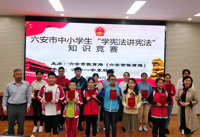 秋高气爽,丹桂飘香。9月26日,第五届“学宪法讲宪法”市级比赛在六安一中东校区落下帷幕,我校获得演讲比赛一等奖和知识竞赛二等奖的佳绩。