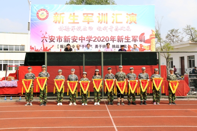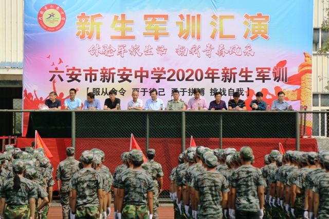 新安中学2020级高一新生在六安市青少年国防教育服务中心25名教官带领下,分早晨、上午、下午和晚上四个时段对学生进行军事训练、国防教育、内务整理、教唱军歌和爱国主义歌曲,期间还穿插进行在国旗下宣誓,整个军训历时五天,按计划圆满完成。