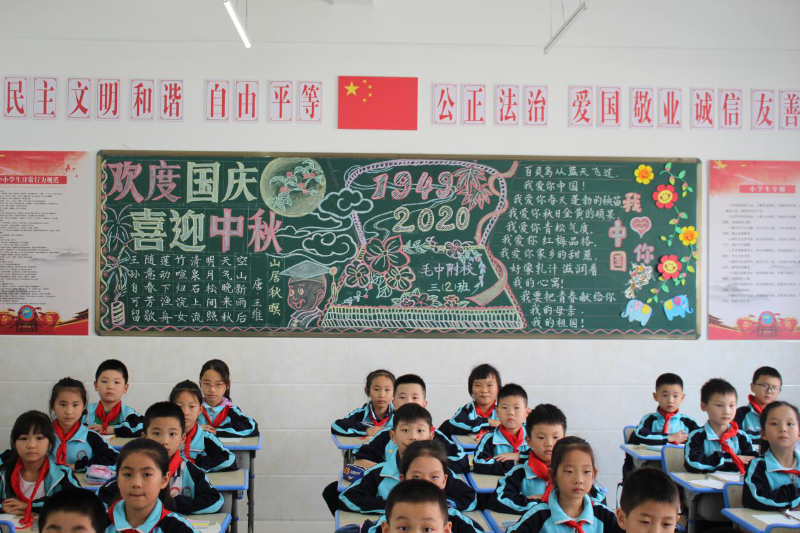 毛中附校开展“迎中秋,庆国庆”主题黑板报评比活动
