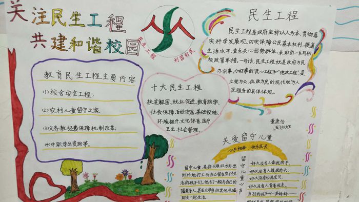 举行“民生工程一堂课”活动。为了让学生更好更快地了解教体民生工程政策,知晓智慧学校建设以及文化惠民工程,深入了解义务教育经费保障机制,各班级拓宽宣传内容,相继开展了民生工程主题班队会、黑板报和手抄报,并向学生发放了宣传单。