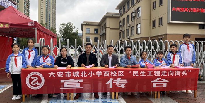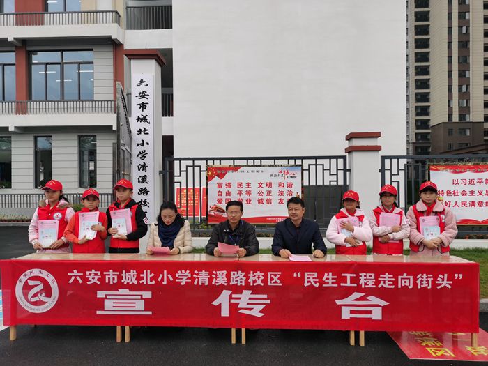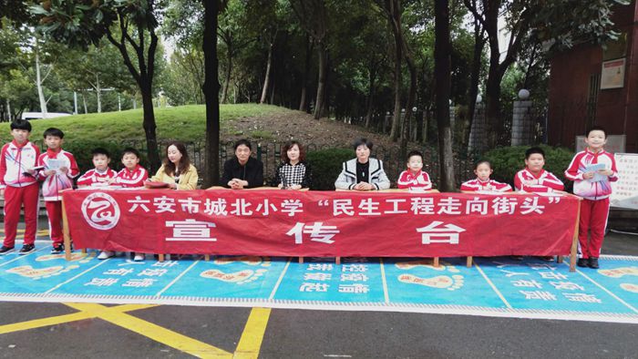 宣传活动走向街头。为了全面展示民生工程实施成果,进一步扩大宣传范围,浓厚宣传氛围,让广大学生家长明白民生工程政策,学校通过电子屏滚动播放宣传标语。10月16日上午,城北小学三校区在校门口悬挂横幅搭建民生工程宣传台。部分党员教师和十余名少先队员志愿服务者现场为群众讲解新政策、新变化,并向市民发放宣传册。