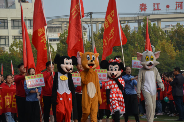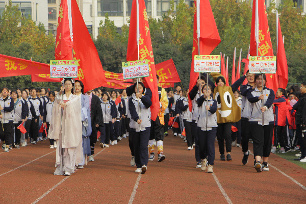 入场式上,各个班级组成方队,高喊着整齐的口号,昂首阔步走过主席台。整齐的步伐踏着他们的坚定,灿烂的微笑写着他们的热情,朝气与活力在他们的身上洋溢,友爱与鼓励在他们心中传递。