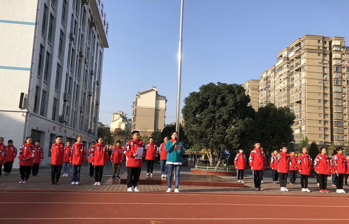 大队委赵一峰主持本次晨会活动。他向同学们介绍了今年消防宣传月的活动主题是“关注消防 生命至上”,向大家普及日常生活中应该如何注意消防安全,发现火情时和遇到火灾时应该怎么做。同时,他号召全体同学认真学习消防法规,掌握消防安全知识,携手共创平安、美丽的校园。