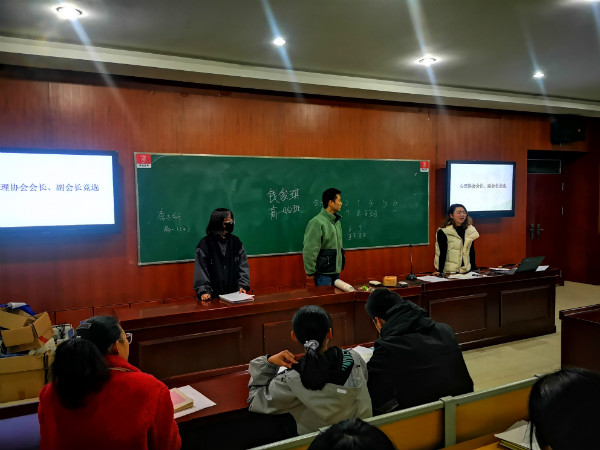 2020年11月19日晚,皖西中学学生社团心理协会在一楼阶梯教室召开迎新会,会议由心理协会指导老师周中鼎主持。