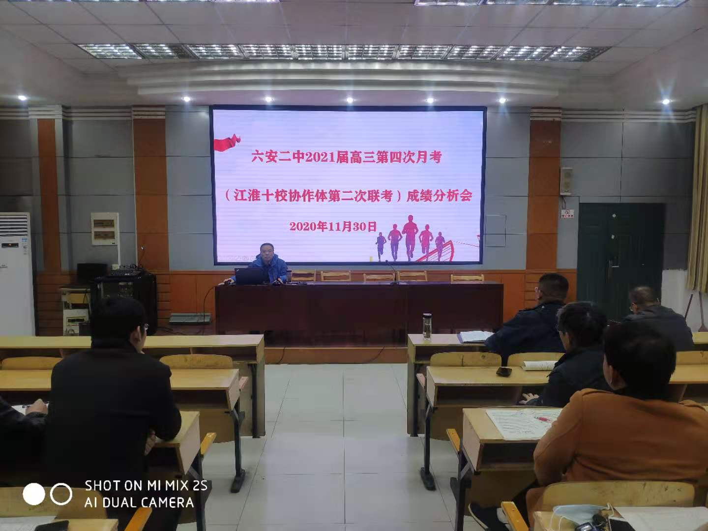 11月30日下午,六安二中在博学楼阶梯教室召开高三年级第四次月考暨江淮十校联考成绩分析会。高三年级全体授课老师参加会议,高三年级部主任闫俊主持会议。