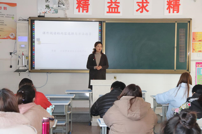 下午李菊老师,主讲“课外阅读的内容选择与指导”。李老师根据自己的教学心得,阐述了走向阅读社会与读书方法的引导,通过分析当前学生课外阅读现状,提出了课外阅读的重要性以及指导课外阅读的建议。教师应有意识的注重课外阅读的指导,有计划的培养学生阅读的兴趣,重视学生思维能力的培养,学校教学也应和家庭教育相结合,让学生父母协助老师共同引导学生培养读书方法,倡导亲子阅读,增强阅读氛围。李老师的讲座让该校受训教师对今后课外阅读的指导有所启发。