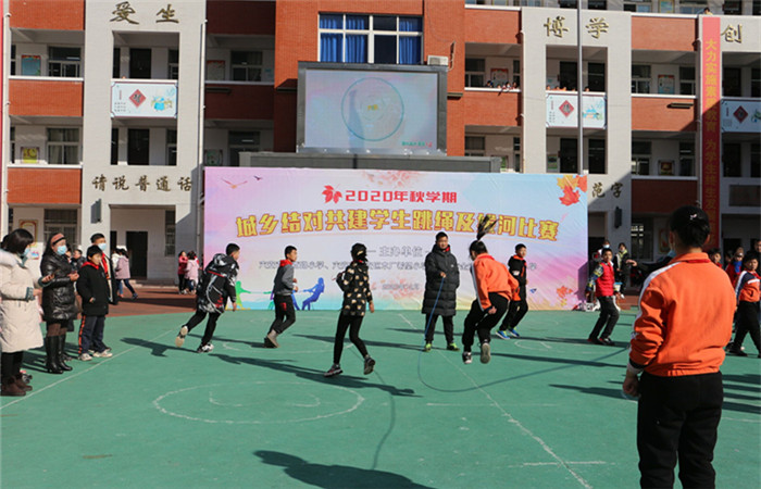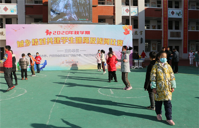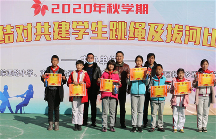 12月15日,一场初雪后的阳光暖暖的,蔚蓝的晴空美得纤尘可见。六安市皖西路小学、金安区木厂希望小学和金安区翁墩乡爱国小学三校城乡结对共建联合举行学生跳绳及拔河比赛。此次比赛共三项:单人跳绳、集体跳长绳以及拔河。
