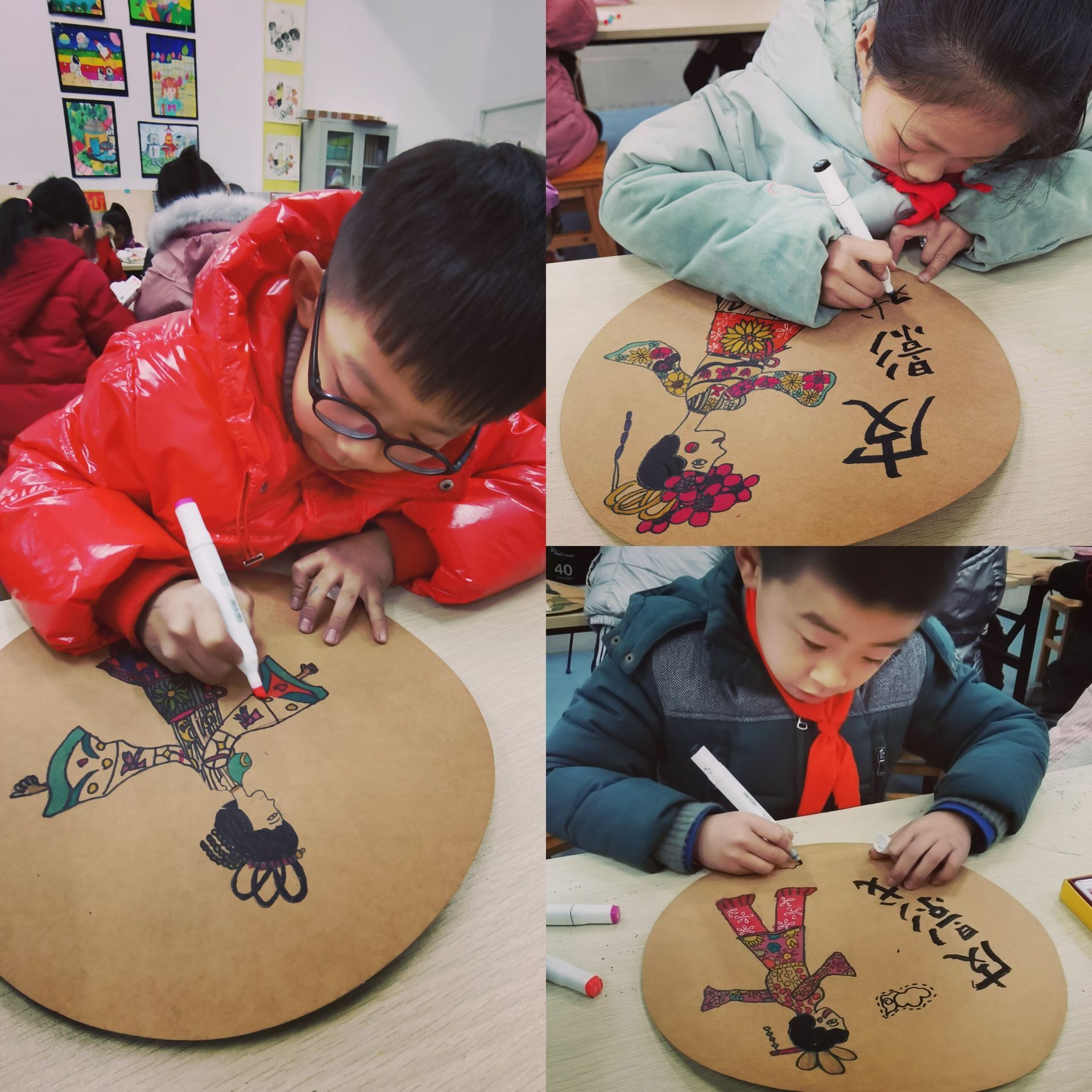 在快乐中学习,在学习中成长。通过本节活动课,不仅让同学们体验了自己动手绘制的乐趣,同时培养了学生们的动手能力和创作能力。更让中国传统手工艺在同学们的心中萌芽,为弘扬中华传统文化添一抹色彩。(孙娟)