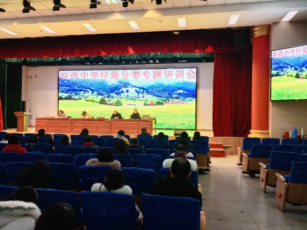 为深入贯彻落实《六安市教育局关于印发六安市学校垃圾分类工作实施方案的通知》,切实做好我校垃圾分类工作,引导师生树立绿色低碳环保生活理念,营造人人环保、人人参与的良好氛围,1月6日下午,我校在学术报告厅组织开展了垃圾分类工作专题培训。学校全体教职员工参加了培训,培训会由副校长吴俊主讲。