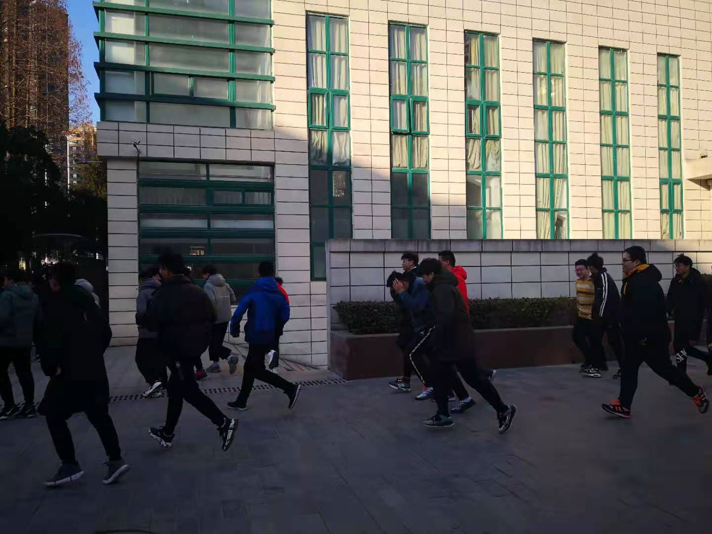 1月19日上午第一节课后,高三学生在各班班主任和班级安全委员的带领下,按照预定的疏散路线迅速撤离到操场,整个过程师生服从指挥,互相帮助,做到了“安全、迅速、有序”疏散,演练达到预期效果。