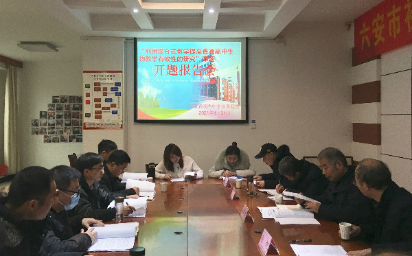 1月21日上午,皖西中学生物组省级课题《利用混合式教学提高普通高中生物教学有效性研究》开题报告会在第二会议室举行。本次开题报告会邀请了六安市教体局教育科学研究院孔庆东院长、六安二中河西校区李向阳校长作为评议专家,做课题指导。校领导及课题组全体人员参加了会议。
