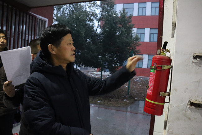 检查组来到学生寝室,对寝室灭火器进行了检查,查看灭火器是否已到有效期,确保消防安全。检查组来到寝室值班室和学生寝室检查了卫生情况、用电安全,没收了学生宿舍大功率用电器,对于发现的问题立即进行整改,确保卫生、用电安全。