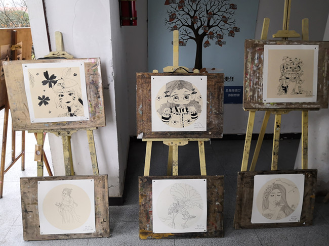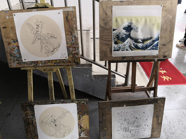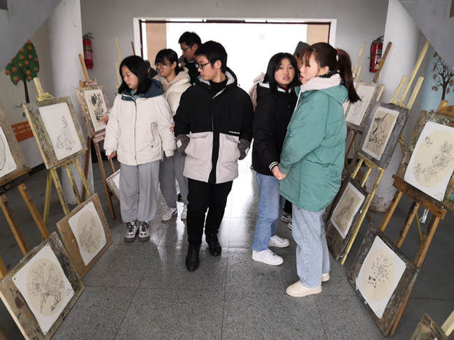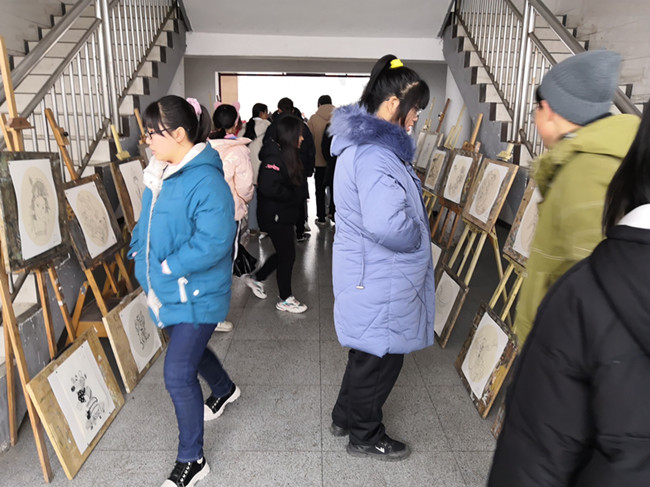 近日,六安市艺术学校在教学楼前举办高一学生美术综合素质汇报展览。