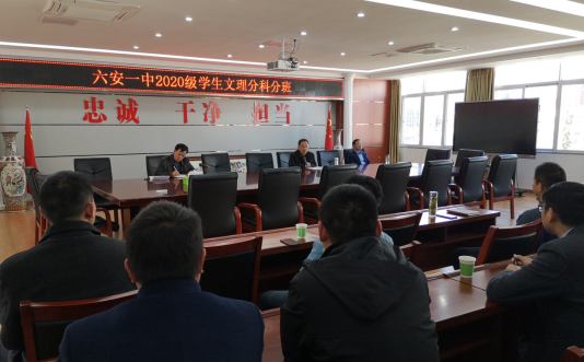 蒋平就文理分科分班有关工作作了部署。一是指出本届高一年级面临“新教材、老高考”的特殊形势,意义重大,同时肯定了上学期高一年级班主任工作,各班班风班貌良好,帮助学生顺利度过了适应期;二是强调本次文理分科分班严格遵循公平公正的原则,邀请了六安市皋翔公证处和校纪委相关人员全程监督,做到公开透明;三是要求各位班主任在分科分班后重视“新教材、老高考”的局面,严格按照新课标要求落实教育教学工作、做好开学考试,检查学生寒假作业等近期工作,年级部要做好本年级三年整体规划、分班后各班明确奋斗目标并加强各班科任教师队伍建设工作。