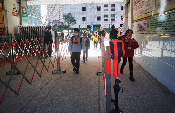 初春的暖阳明媚,款款的微风轻拂。2月22日,又是一年开学季,皖西路小学迎来1700多名师生返回校园。为落实疫情防控要求,避免扎堆,该校实施分批错峰返校,上午四、五、六年级学生返校,下午一、二、三年级学生返校。