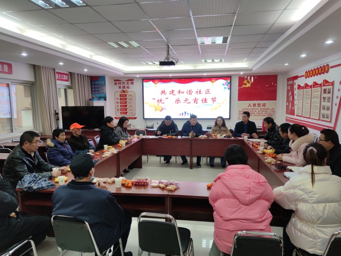 2月25日下午,市政协常委、民盟市委委员、民盟二中支部主委刘新荣带领民盟六安二中支部支委会成员一行5人赴金安区中市街道前进社区开展结对共建活动。恰逢元宵佳节前夕,前进社区在社区会议室精心布置,举行了“我们的节日——元宵·共建和谐社区、统乐元宵佳节”元宵茶话会。