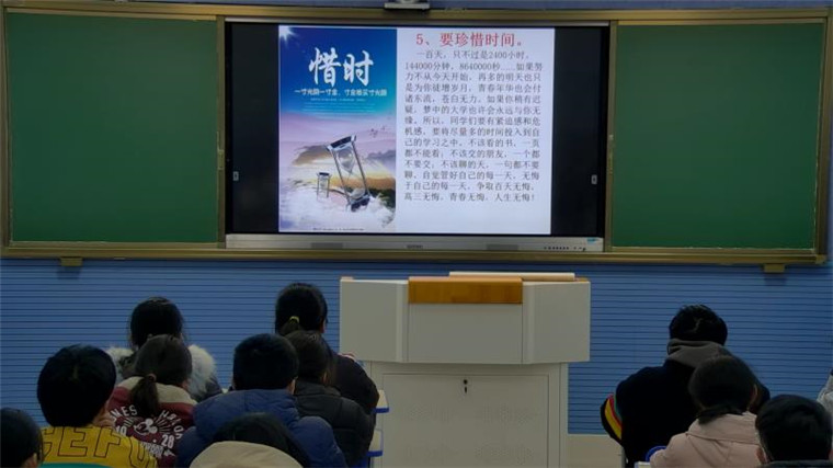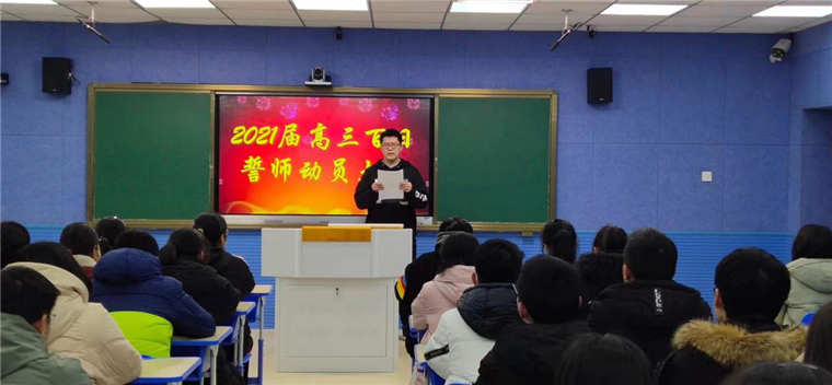 3月1日,春寒料峭,细雨霏霏。该校高三年级利用周会课通过录播形式召开疫情防控下特殊的“百日动员誓师大会”。