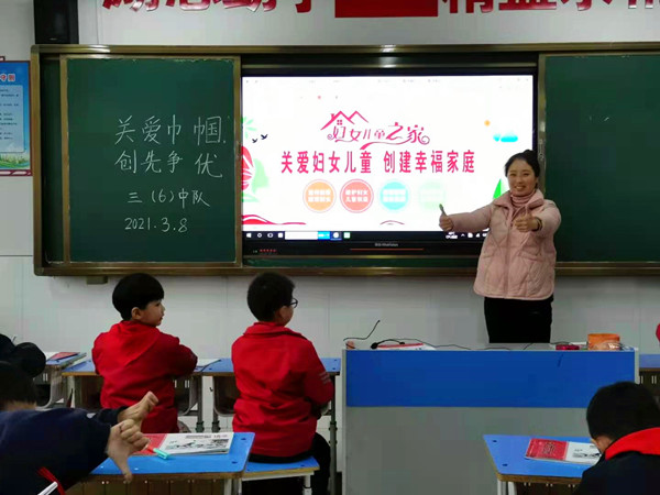 国际妇女节,是世界各国妇女争取和平、平等、发展的节日。对于每一位伟大的女性来说,这是她们“团结拼搏、开拓进取、与时俱进、无私奉献”精神彰显的纪念日。该校各中队辅导员制作了精美的课件向队员们详细讲解了国际妇女节的由来和意义,引导带领队员们通过手工制作、唱一首歌、诵一首诗等仪式感较强的方式来表达自己对家族女性付出的敬意和感恩。同时各年级组也为女性教职工组织了形式各异的庆祝活动,充满欢歌笑语的团建活动、纾解工作压力的体育活动、洋溢人文关怀的问候,获得了全体女性教职员工的积极响应和一致好评。