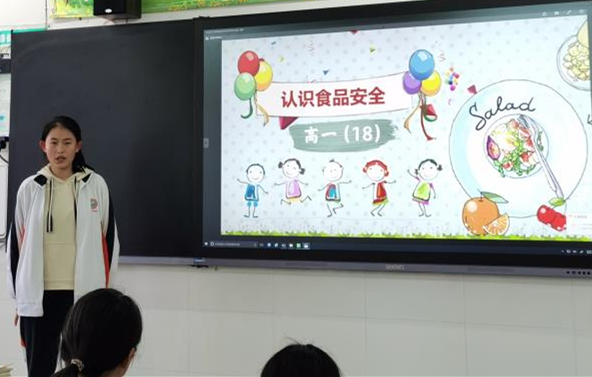 高一(18)班班主任高干老师带领同学们观看了食品安全知识视频,了解了日常生活中的食品安全问题案例,对食品安全有了更深的感受。随后,同学们上台讲述了身边发生过的食品安全事件,并指出了日常生活中的一些不良卫生习惯。高干老师引导同学们认识到食品安全是指食品无毒、无害,符合应有的营养要求,对人体健康不造成任何急性、亚急性或者慢性危害。最后,高干老师希望同学们养成良好的卫生习惯,做一名身心健康的好学生。