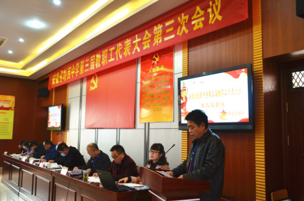 校工会副主席、分校副校长方春艳同志作了《工会工作报告》,她对过去两年的工会工作进行了回顾,同时提出了今后的工作思路。副校长杨曼就本次教代会议案《皖西中学教职工一次性效能奖考核方案》(草案)作了细致的解读。