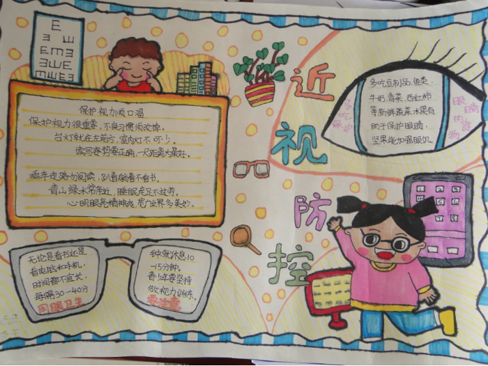 绘制手抄报。各学校通过系列活动的开展,要求同学们以纯真的视角和斑斓的色彩,拿起画笔绘制精美的手抄报,向大家介绍爱眼护眼知识,展现属于自己的独特爱眼心声,为孩子们营造了爱眼氛围,督促孩子用实际行动呵护好自己的眼睛。(张 玲)