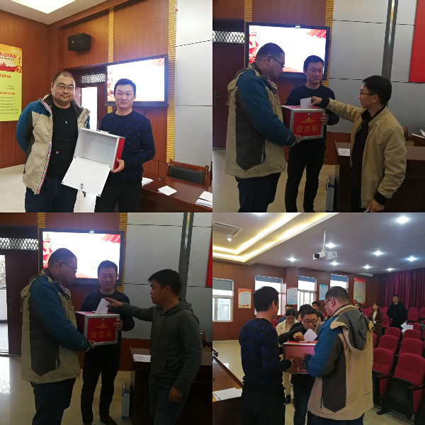 随后进行民主评议党员,经全体党员同意,由陈龙和杨国云二位同志担任监票人,由张健和于振坤二位同志担任唱票人。
