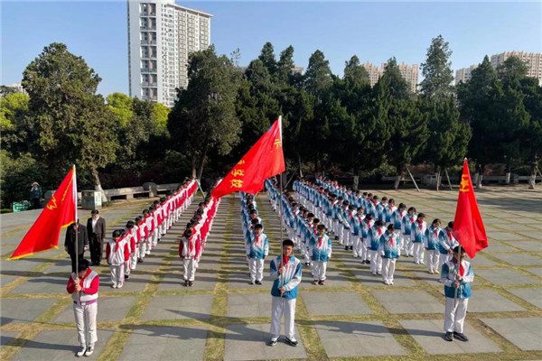 随后,全体少先队员齐唱《我们是共产主义接班人》,春日渐浓,歌声悠扬,在雄伟的烈士纪念碑前,孩子们用稚嫩的童声诉说着对革命先烈的深切怀念和无比崇敬。