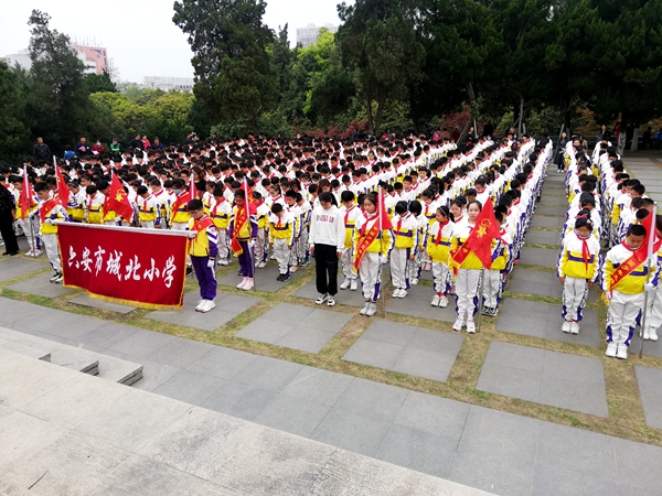 3月30日下午,本部六百余名师生,怀着无比崇敬的心情来到皖西革命纪念馆,开展清明祭扫活动。通过向革命烈士敬献花篮、默哀,少先队员代表发言、全体队员重温入队誓词,表达了对人民英雄的深切缅怀与崇高敬意。