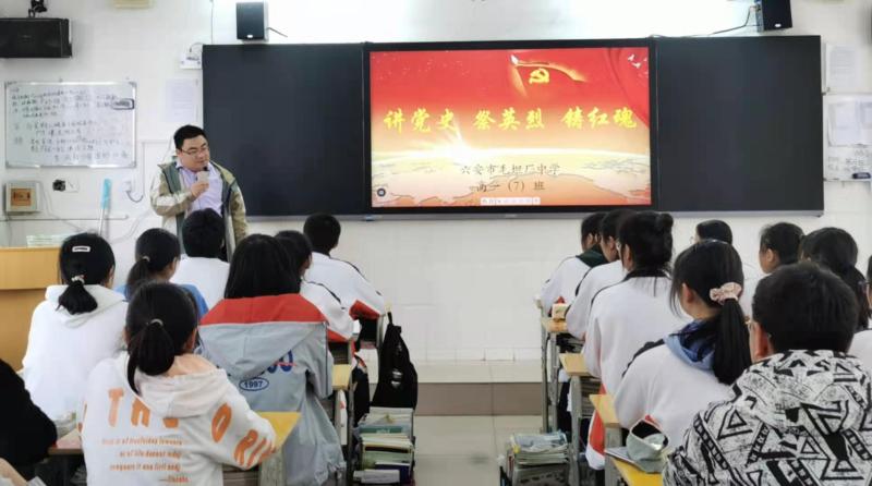 3月29日,毛坦厂中学各班召开“讲党史 祭英烈 铸红魂”主题班会。高一(7)班班主任廖文跃老师给全体同学上党史课,讲述战斗故事,传承英烈精神。廖文跃老师首先带领同学们观看党史教育学习视频,告诉同学们,革命先烈用他们的血肉筑起的丰碑永垂不朽,作为新时代的青年应该清楚了解英烈光辉业绩,依循先辈足迹,传承英烈精神。