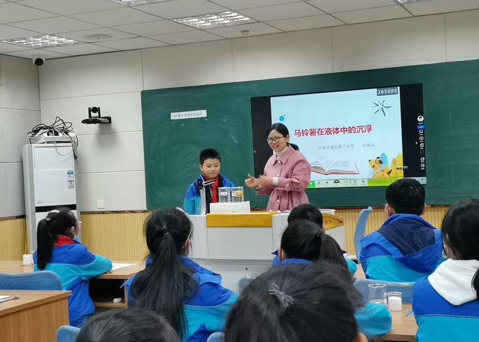 为进一步开展有效科学教学研究,不断提高科学教学活动的质量,促进学生的全面发展,4月1日下午,六安市城北第二小学开展了科学教学研讨活动。科学组江海云老师给大家展示了一节非常出色的科学探究课——《马铃薯在液体中的沉浮》。
