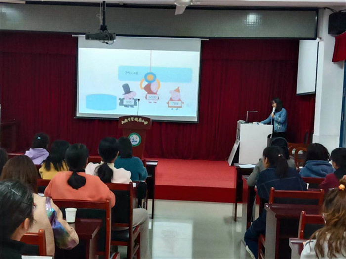 随之,各年级组数学教师代表,纷纷登台展示了自己的研究成果,并演示了一些新颖实用的小游戏。六年级组左运生老师,把莫比乌斯环与剪纸游戏相结合,并开展家校互动,举办学生活动,让学生充分感受到数学的神奇和学数学的乐趣。杨婷婷老师,精心准备了“猜年龄游戏”,使原本枯燥的数学课堂,增添了无穷的乐趣,极大地激发了孩子们的探究欲望,充分调动了孩子们学习数学的积极性和主动性。邬逸敏老师,与学生一起制作四边形、三角形,利用几只神奇的笔,撬动了学生的学数学兴趣,点拨了难点,强化了重点知识。何荣荣老师,熟练地使用信息技术,制作了“抓娃娃游戏”,使得课堂教学深入浅出,让三年级的孩子们很轻松地掌握了两位数乘两位数的方法。陈娟老师,把“摆火柴棒的游戏”与教学内容巧妙结合,让一个游戏贯穿整个单元的学习。刘晓燕老师,分享了自己对低年级数学教学的个性化思考,并把自己的探究实践成果带到会场,作了精彩的展示。