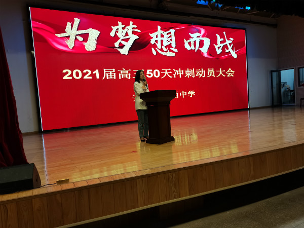 壮志凌云迎高考,全力以赴创辉煌。为进一步激发高三学子的学习积极性,营造积极进取的备考氛围,鼓舞士气,4月17日下午,我校在学术大礼堂隆重举行2021届高三50天冲刺动员大会。学校领导班子及高三年级部等相关人员出席大会,全体高三师生参会。