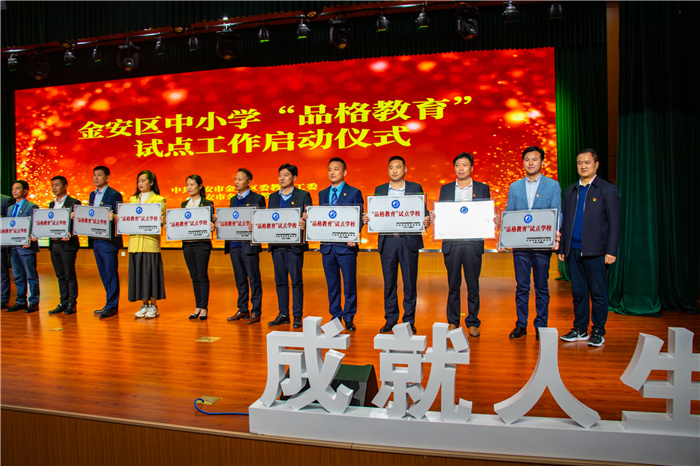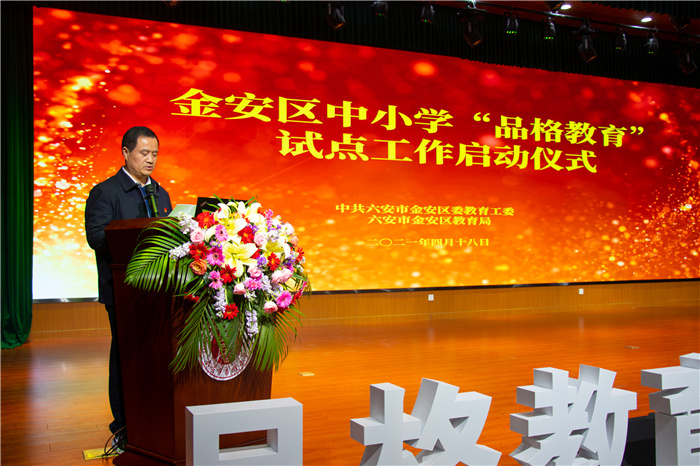 金安区委教育工委书记、金安区教育局局长,金安区品格教育领导组组长韩怀国为15所试点学校进行授牌,共同按下屏幕启动键,正式开启金安区中小学“品格教育”务实、创新之路。