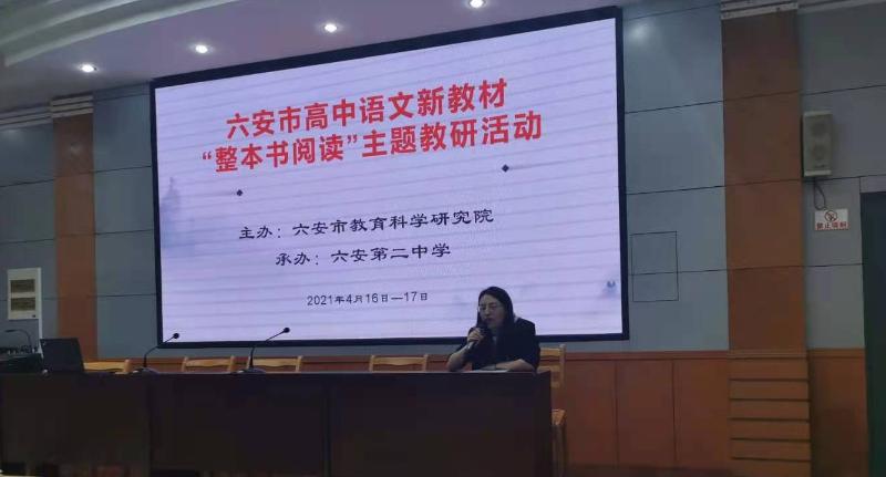 为扎实推进整本书阅读教学,解决高中语文新教材实施以来整本书阅读教学遇到的疑难,提升整本书阅读教学水平,促进我市高中语文教师深入开展整本书阅读教学策略研究,六安市教育科学研究院于4月16日、17日举办六安市高中语文新教材“整本书阅读”主题教研活动。