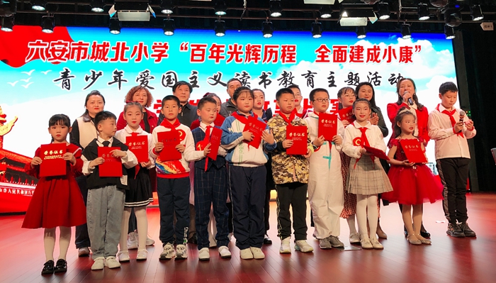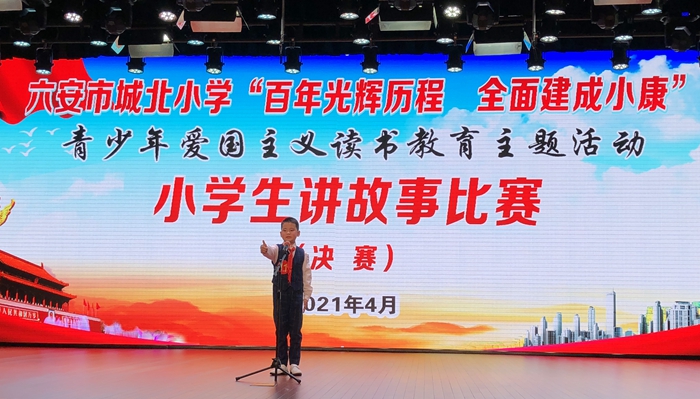 为迎接中国共产党成立100周年,大力宣传展示全面建成小康社会成果,对学生进行爱国主义教育,培育和践行社会主义核心价值观, 4月26日下午,六安市城北小学“百年光辉历程 全面建成小康”爱国主义读书教育活动讲故事比赛的决赛在演播厅隆重举办。