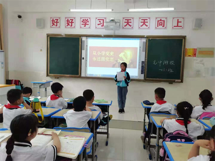 5月10日下午班队会,毛中附校来自小学部、初中部的13名学生组成的青少年党史宣讲团进入一年级全部班级,七年级部分班级开始他们的首场宣讲。