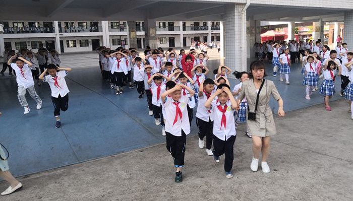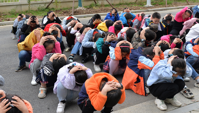 5月12日,解放路三小将军路校区开展“防震减灾应急演练”活动。演练前一周,学校成立了演练领导小组,制订了详细的演练方案。利用本周一全体教师例会时间,就演练活动的人员安排、疏散路线、各种安全事项等内容作了明确分工和要求,各班主任在班队会课上开展了一次地震科普和应急避险知识教育,详细介绍了本次防震减灾演练逃生方法和路线。当天上午8:10分,第一声地震警报响起,同学们迅速就近躲避在课桌下,并用手臂、书或书包护住头部和颈部,进行避震,历时三分钟;第二声疏散的信号响起,师生们立即按照预先制定的疏散方案,有秩序地快速撤离到学校操场开阔地带,到达安全区域后各班主任对本班学生人数进行了清点,历时2分10秒。整个演练活动严肃认真、快速有序,共用时5分10秒。